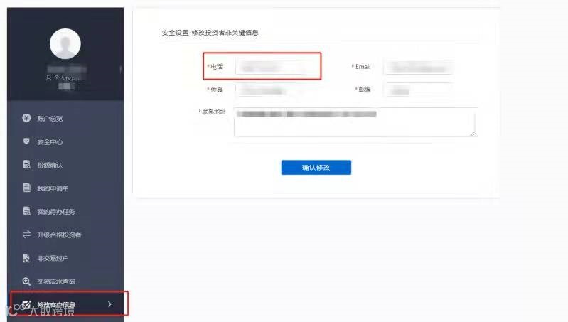 2、点击【修改客户信息】,确认系统留存手机号是否为最新联系方式,如需更改,请输入最新手机号,点击【确认修改】。