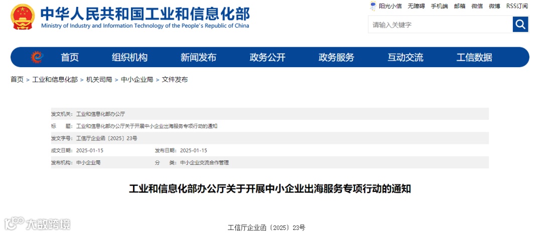 工业和信息化部办公厅关于开展中小企业出海服务专项行动的通知