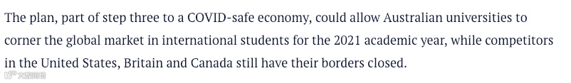 因此澳洲势必会先于美国、英国和加拿大这些国家率先向留学生开放边境。