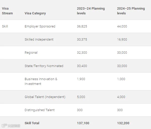 2024-25财年,移民总配额从本财年的19万个减至18.5万个,减少了5000个。