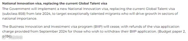 与此同时,澳洲政府计划投入140万在2024年底之前推出新的国家创新签证(NIV),用新的国家创新签证(NIV)取代全球人才(Global Talent Visa)签证和188签证。