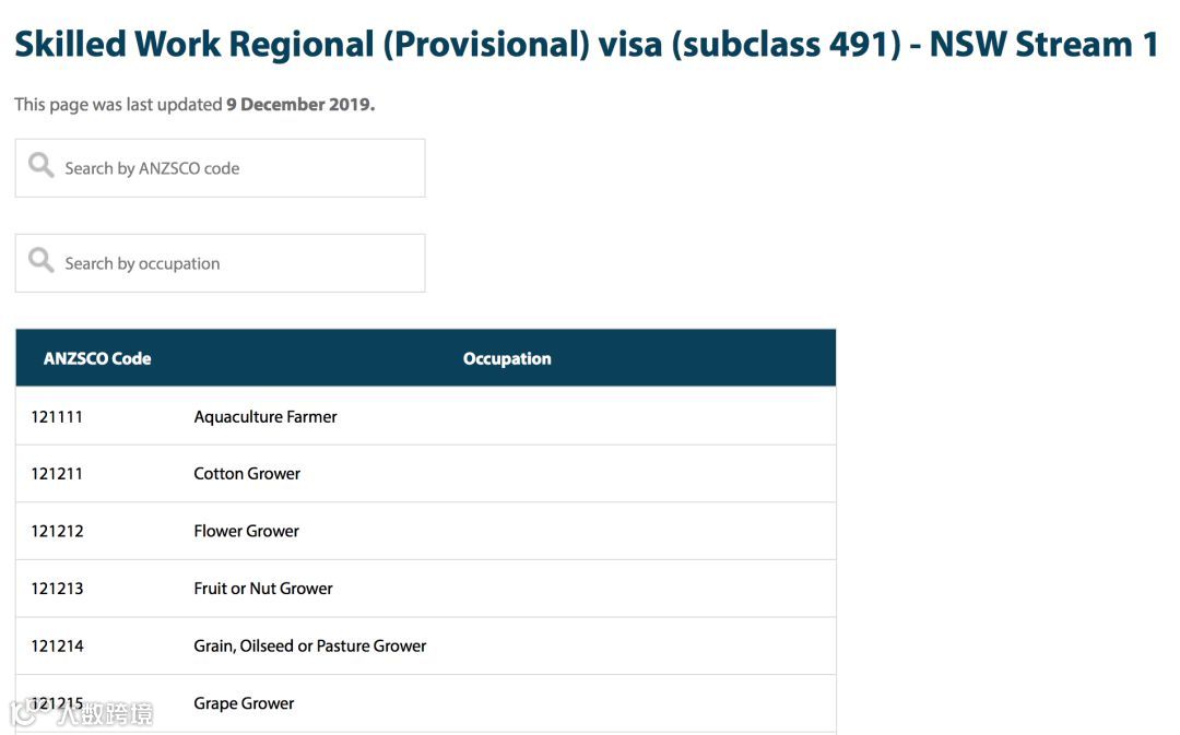 详情请看:https://www.industry.nsw.gov.au/live-and-work-in-nsw/visas-and-immigration/nsw-skilled-occupations-list/skilled-work-regional-provisional-visa-subclass-491