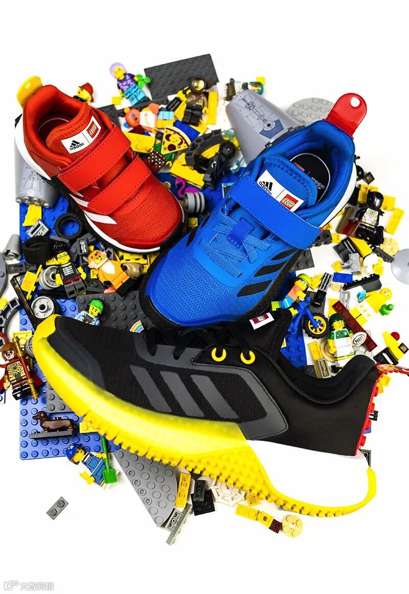 Adidas x LEGO 儿童联名系列选取乐高最具辨识度的大量色块拼接呈现,呼应乐高积木的经典特色。
