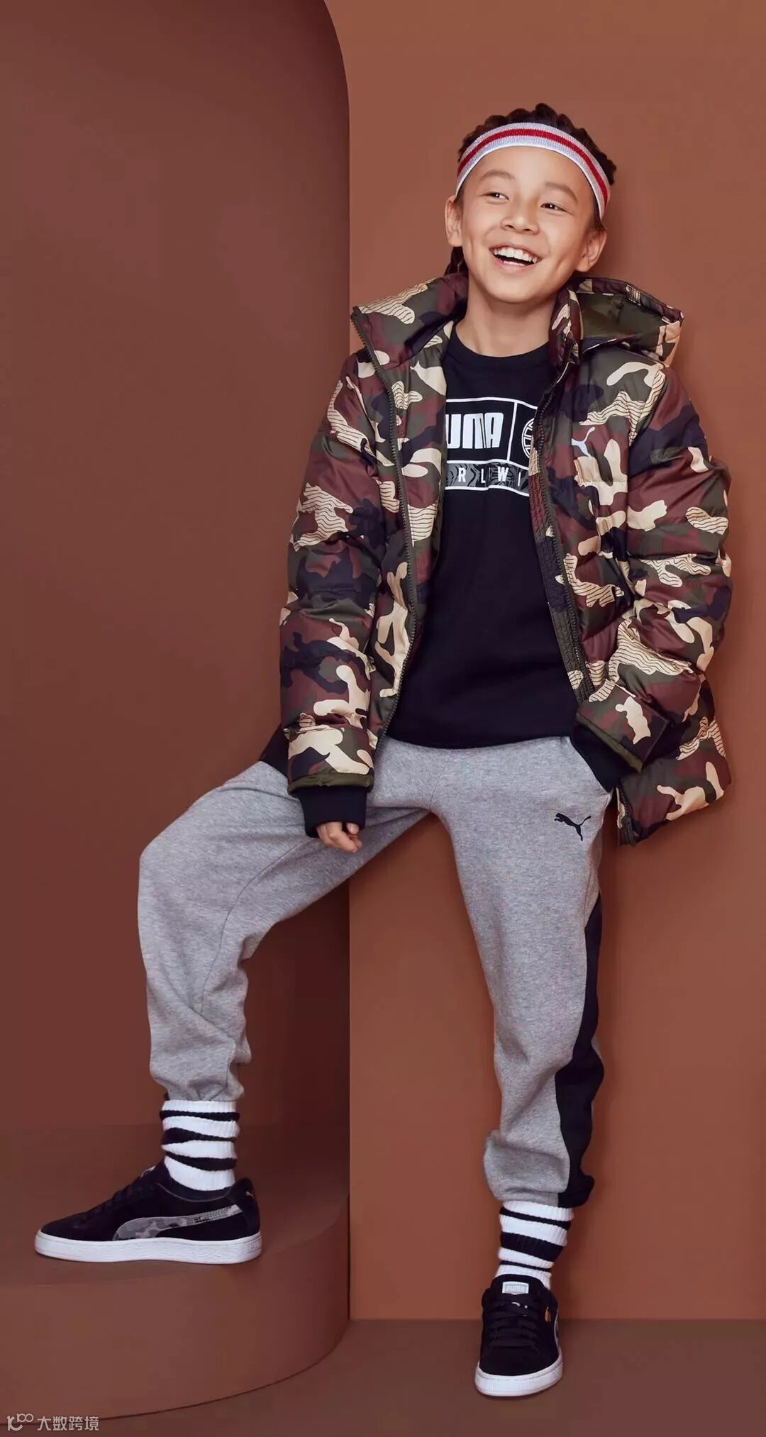 迷彩轻薄羽绒服内搭黑色印花加绒卫衣,配灰色裤子再加迷彩反绒面板鞋,穿着舒适,又透气。不失风度亦不失温度,尽显潮流气质。