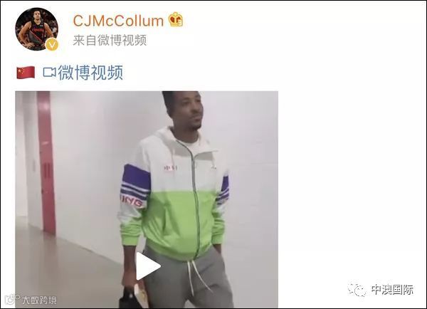 波特兰开拓者队的球员CJ,也发布了一条微博,配图是中国国旗。