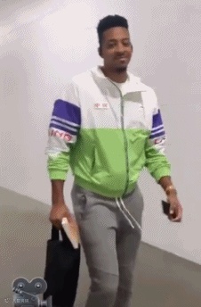 视频中,他穿着右胸口印有“中国”字样的运动外套抵达球馆。
