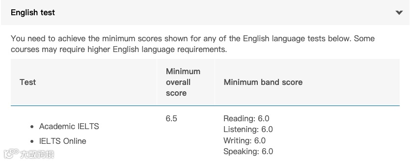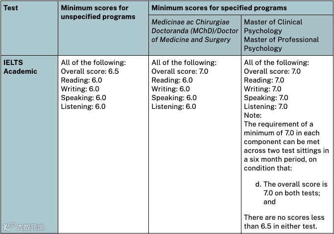 澳洲八大雅思要求