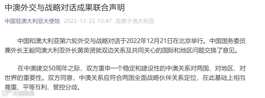 中澳发布联合声明