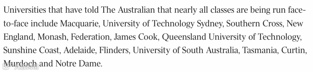 目前各大学都纷纷开始第一学期,大部分境外的国际留学生也已经回到澳洲。以下这些大学宣布几乎所有课程都恢复线下授课模式。