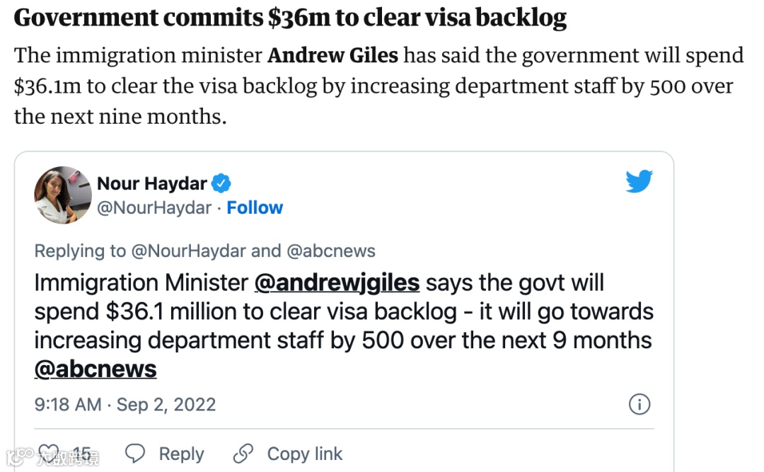 澳洲移民部长承诺本财年将增加3610万澳元预算,新增500多位签证官来加速审理所有积压签证案件!在未处理的96.2万份签证申请中,57.1万份属于临时签证,近15万份属于技术签证,23.2万份属于家庭签证。