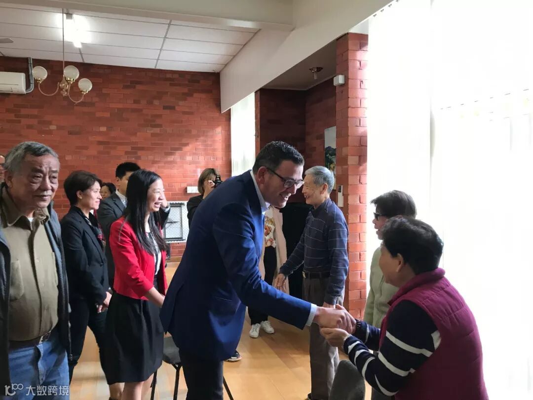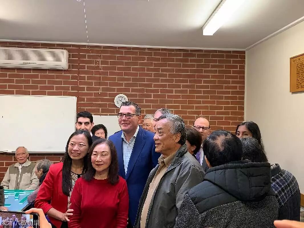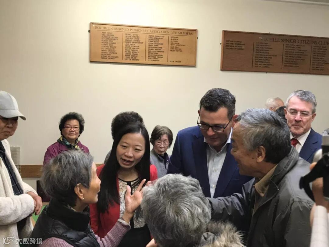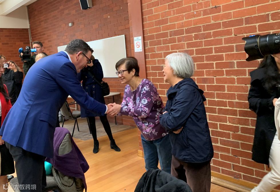 维多利亚州长安德鲁和工党候选人杨千慧、余慈英等人与华人社区的老人们握手问好