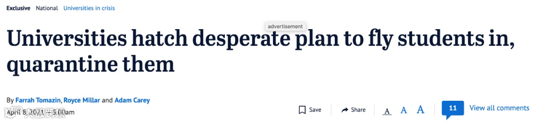 根据《The Age》的报道,维州的大学非常希望今年能接回留学生,他们建议推出一个类似澳网公开赛项目的检疫计划,由他们支付一部分费用。