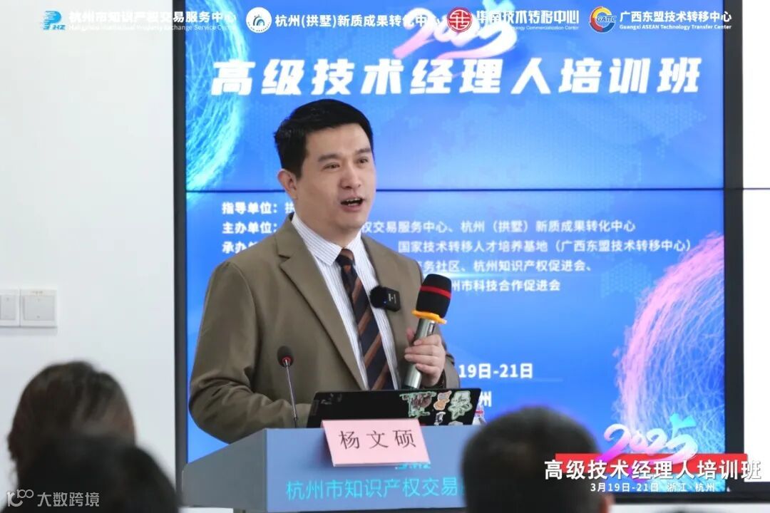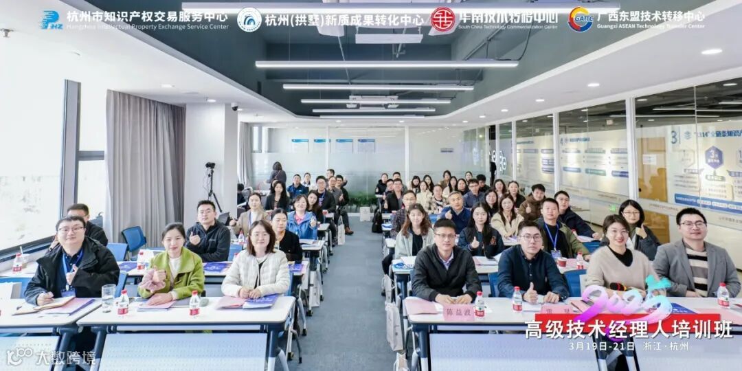 本次高级技术经理人培训班由杭州市知识产权交易服务中心、杭州(拱墅)新质成果转化中心举办,华南技术转移中心、国家技术转移人才培养基地(广西东盟技术转移中心)承办,智慧网谷慧创(智新)商务社区、杭州知识产权促进会、侨创未来人才科创事务所、杭州市科技合作促进会协办。