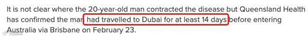据了解,该男子目前在Royal Brisbane and Women’s Hospital接受隔离。该学生曾去过迪拜,在那里呆了至少14天。之后,他于2月23日飞抵布里斯班。