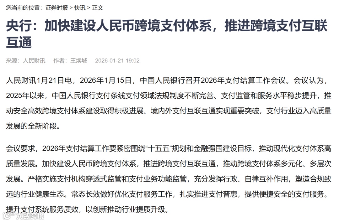5、央行:加快建设跨境支付体系