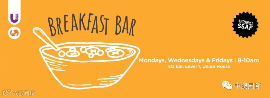 每周一,周二,周三,和周五TheIda Bar在Unionhouse level 1 8点到10点给大家提供免费的早餐。