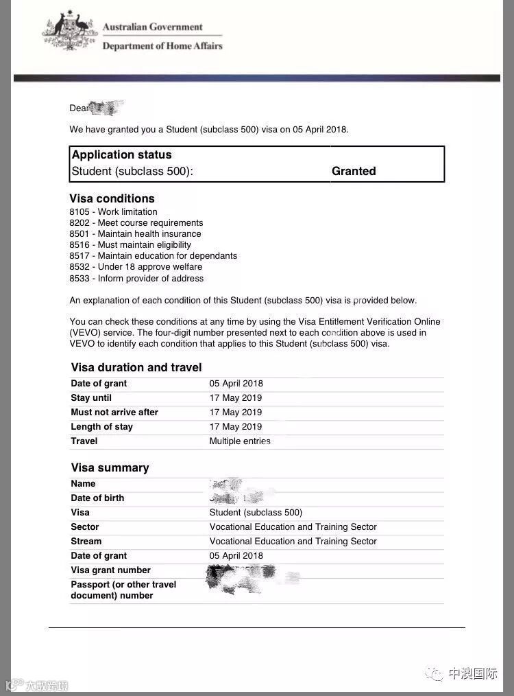 在有了一份特别完美的GTE之后,我们就帮D同学递交了签证资料。就在不久前,D同学的学生签证成功下签啦。