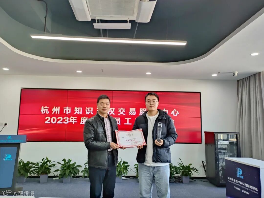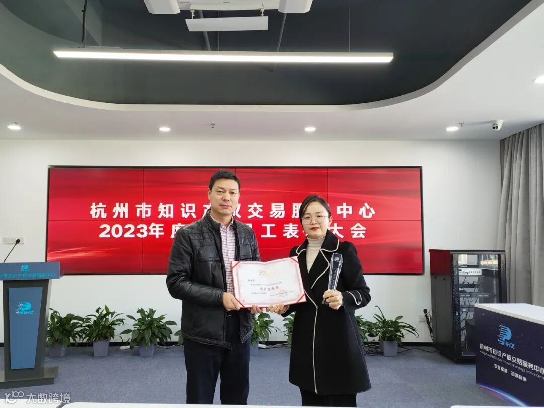 突出贡献奖:咨询服务部负责人——杨培芳,凭借扎实的专业能力和业务水平,2023年出色完成市级标准化试点、数据知识产权改革创新、保护中心工作站运营、知识产权项目申报等重要工作任务,为杭知交“1314”服务体系建设做出了突出贡献。