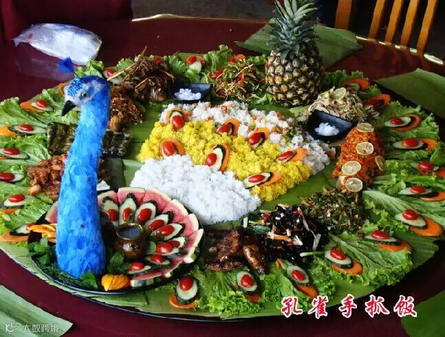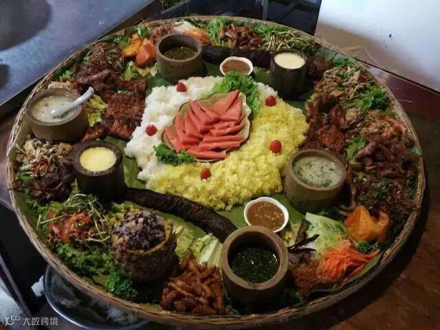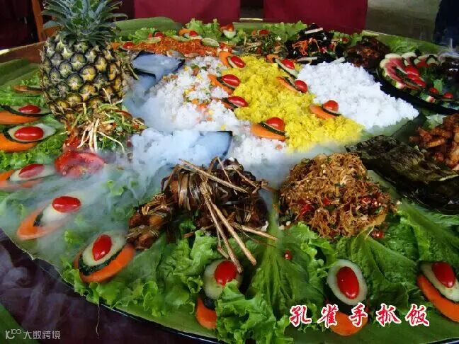 | 到了饭点带着家人、朋友再吃上一桌具有景颇族特色的手抓饭,一桌子人围在一起用手抓着最特色的景颇菜肴,想想都美,何况这一桌子宴席还做得那么漂亮 |