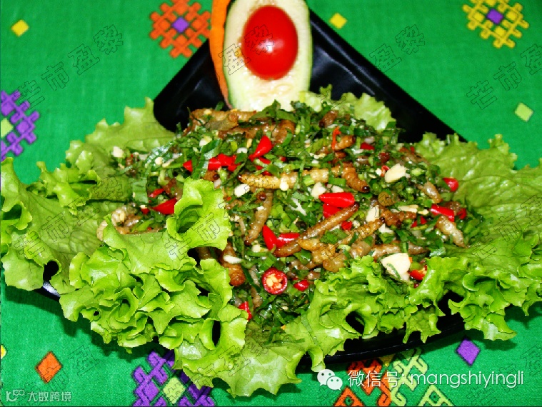 逐一打开“绿包”:有喷香的糯米饭,有鲜美的鱼腥草,有蜂蛹荷包蛋,还有飞蚂蚁煎饼、舂烤绿斑鸠、帕滚酸菜鱼等,真不知先吃什么好。面对整桌碧色、满席佳肴,再加上醇香的米酒、水酒和景颇族同胞的热情好客。