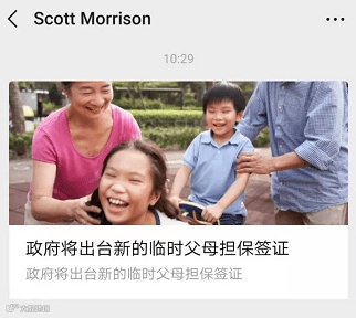 3月1号上午10点29分,澳洲现任总理斯科特·莫里森通过其个人官方微信账号推送一条重要信息,全文如下: