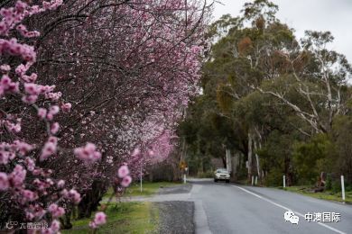 时间是八月初,所到之处各种花都开了,阿德莱德很难找到大片赏樱的地方,但是这边很喜欢种红叶李和梨花,偶尔还有樱花间种其中。这几种树花期都差不多,也都是先开花后发叶,树形花形也类似,一起开放的时候显得特别热闹。我们沿着57号观光路线开的时候偶然间发现了这条开满鲜花的小路。这条路两边是两个门对门店的大农场,虽然一路也看到不少人家房前屋后的花开得很美,但是像这样一整条路一起开花的景象还是比较少见的。