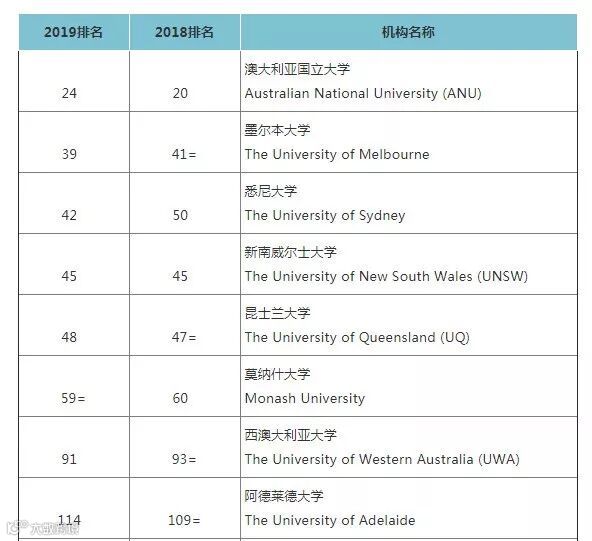 悉尼大学、新南威尔士大学、昆士兰大学、莫纳什大学、西澳大学也进入百强!