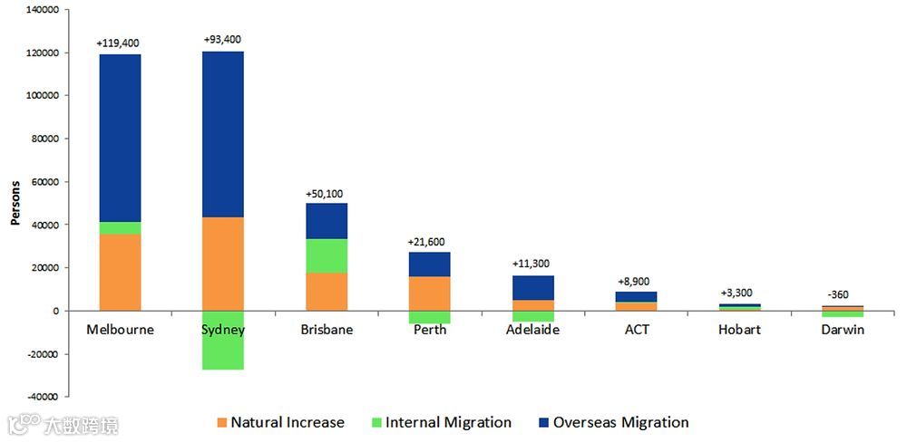 2011-2016年,澳洲吸纳了1,379,055名海外移民,他们当中,85.52%的人都选择定居在首府城市。悉尼和墨尔本更是50%以上新移民的定居选择。