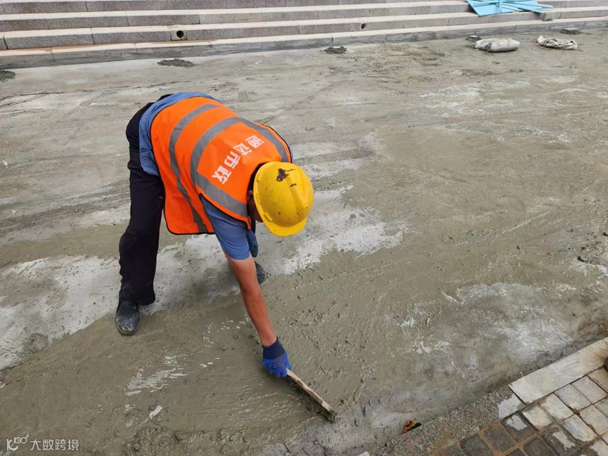 雨天积水,为来往行人造成不便,且存在较大安全隐患。为改善通行环境,消除安全隐患,经现场查看后,制定施工方案。拆除原有人行道花砖,采用透水混凝土施工。