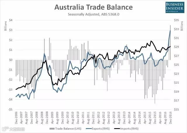 澳洲12月贸易顺差