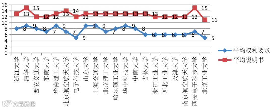 从上图可以看出,2021年浙江大学、清华大学、西安交通大学的发明专利申请量排名前三,从专利质量来看,排名前三的大学中,清华大学的专利质量最好,平均权利要求项数为9,平均说明书页数为15。