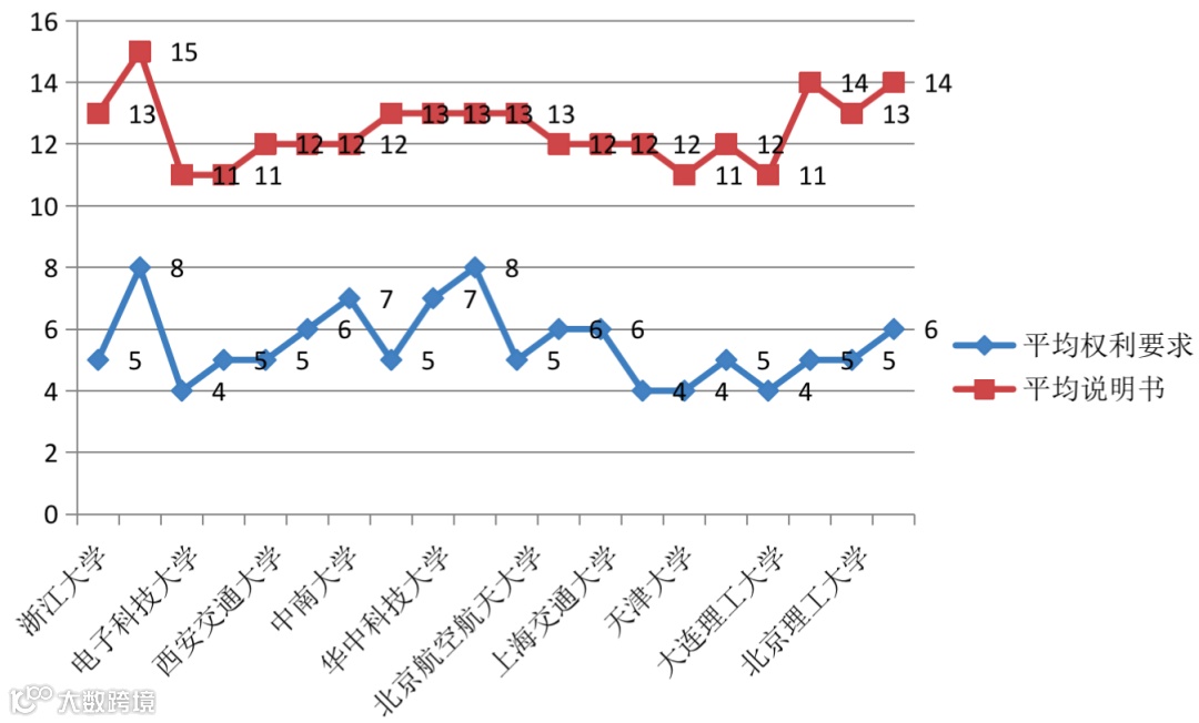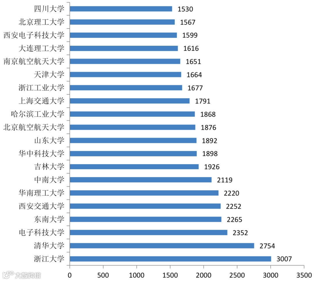 从上图可以看出,2021年浙江大学、清华大学、电子科技大学的发明专利授权量排名前三,从专利质量来看,排名前三的大学中,清华大学的专利质量最好,平均权利要求项数为8,平均说明书页数为15。