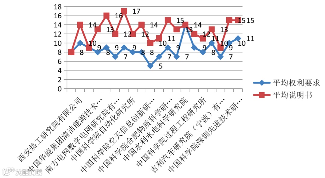 从上图可以看出,2021年西安热工研究院有限公司、中国电力科学研究院有限公司、中国华能集团清洁能源技术研究院有限公司的发明专利申请量排名前三,从专利质量来看,排名前三的科研院所中,中国电力科学研究院有限公司的专利质量最好,平均权利要求项数为10,平均说明书页数为14。