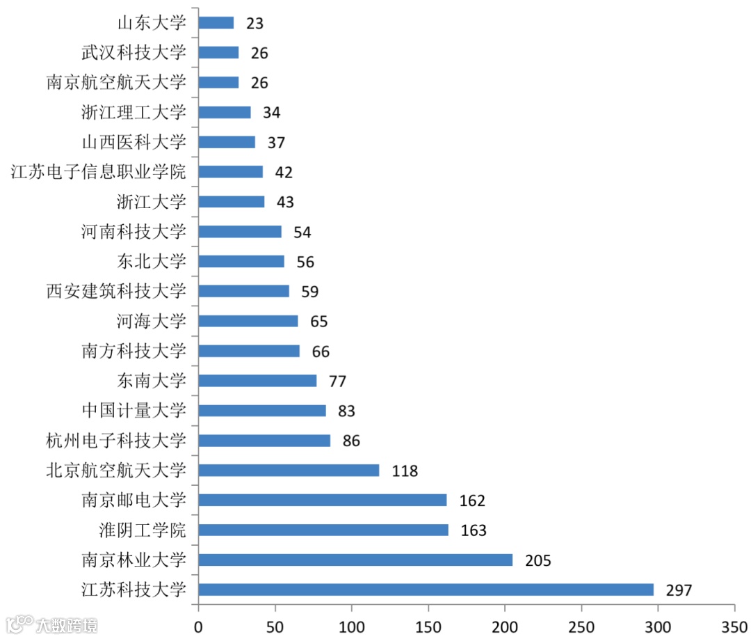 从上图可以看出2021年高校发明专利许可数量2107件,其中普通许可1758件,独占许可191件,排他许可158件。许可数量最多的高校是江苏科技大学,许可专利数量297件。