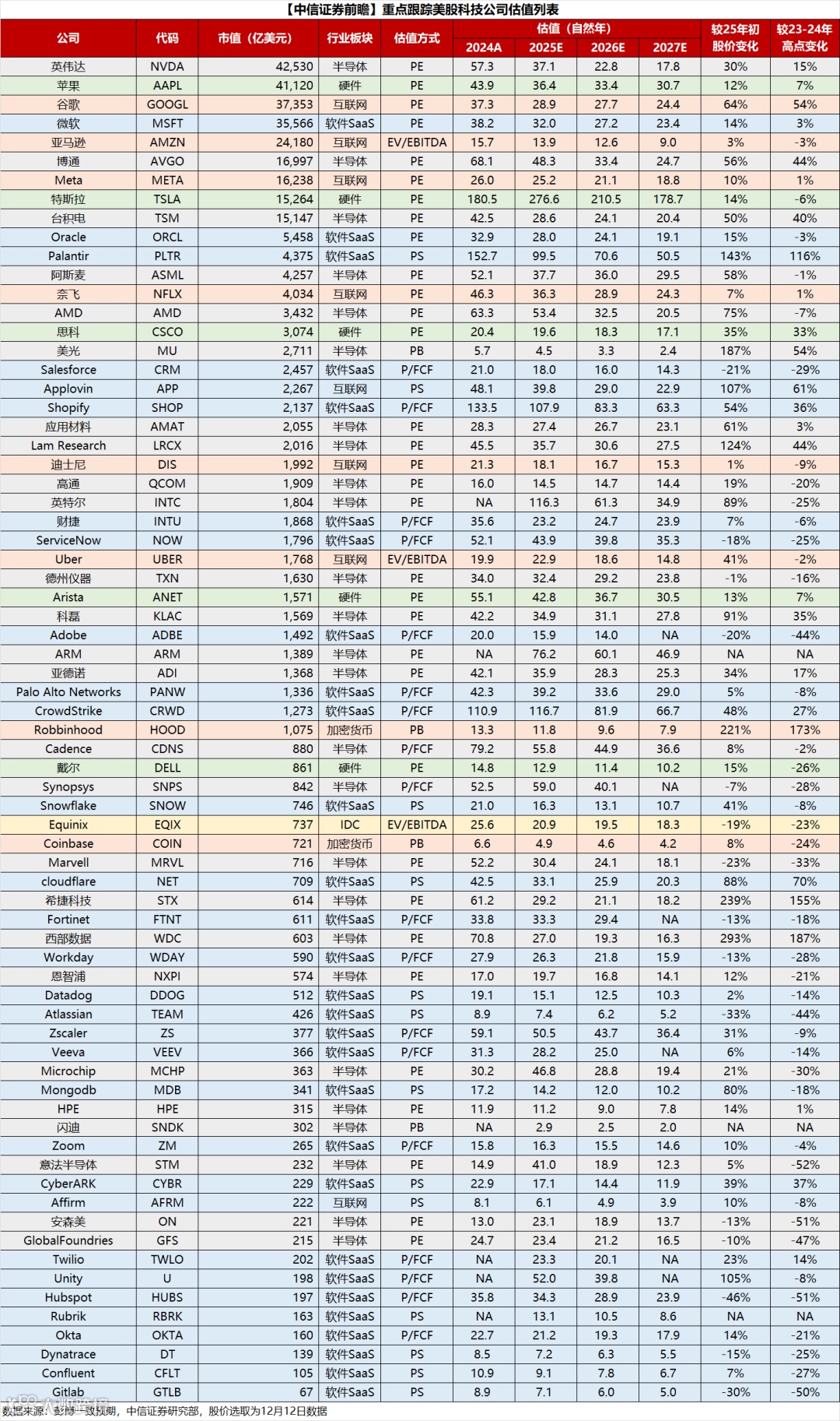 2)重点美股科技公司估值
