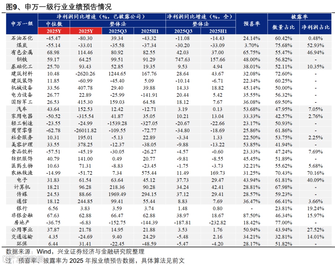 从已披露年报业绩的公司来看,2025Y全部A股以中位数/整体法计算的净利润累计同比增速分别为17.94%/37.26%,较前三季度的14.15%(整体法)继续改善。