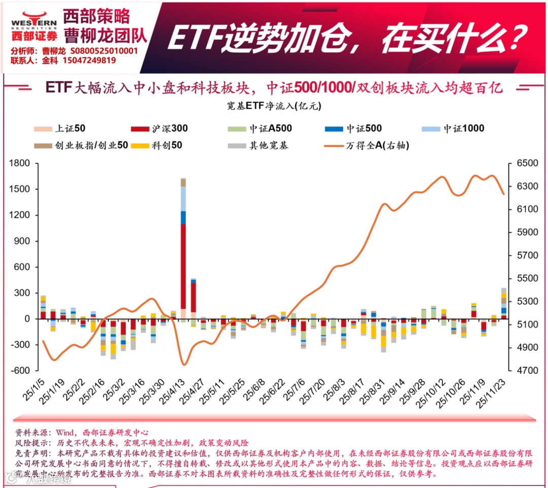 2)ETF流入中小盘和科技成长板块,中证500/1000/双创板块流入均超百亿。
