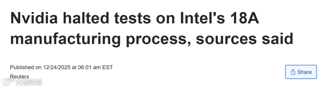 知情人士称,英伟达已暂停对英特尔18A制程工艺的测试。