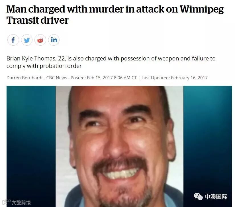 2017年2月,加拿大的一位公交车司机在终点站要求一名乘客下车时,被这名乘客用匕首活活捅死...