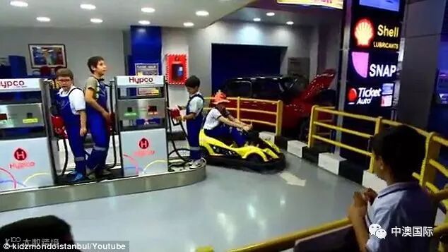 孩子们通过带有“登机牌”的模拟机场进入主题公园,并使用他们从工作中获得的当地“Kidlar”货币来支付物品费用。