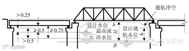 ③ 桥下净空高度:桥跨结构最下缘至设计洪水位(或计算通航水位)之间的距离。