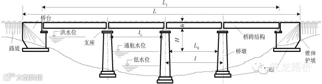 ① 桥长:两桥台胸墙之间的距离,桥梁规模的划分指标。