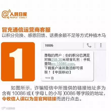 通过手机和移动互联网实施的诈骗中,利用伪基站群发“假冒银行官方号码+钓鱼网址”的短信依然占据很大比重。例如“95XXX”发来的“积分换礼品”信息,短信的内容大致是“登陆XXXXX网站可激活领取礼品”,落款为“某某银行”。如遇到类似情况难辨真伪,可致电相关银行官方热线进行核实。