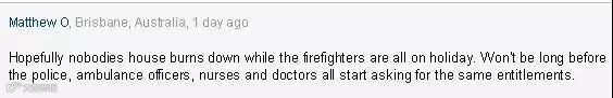 甚至还有人说:一辆消防车500澳币,三辆1500,消防员啥都没做,钱就花花往口袋里流!