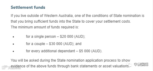 在澳大利亚境外的申请者,需要提供资金证明: