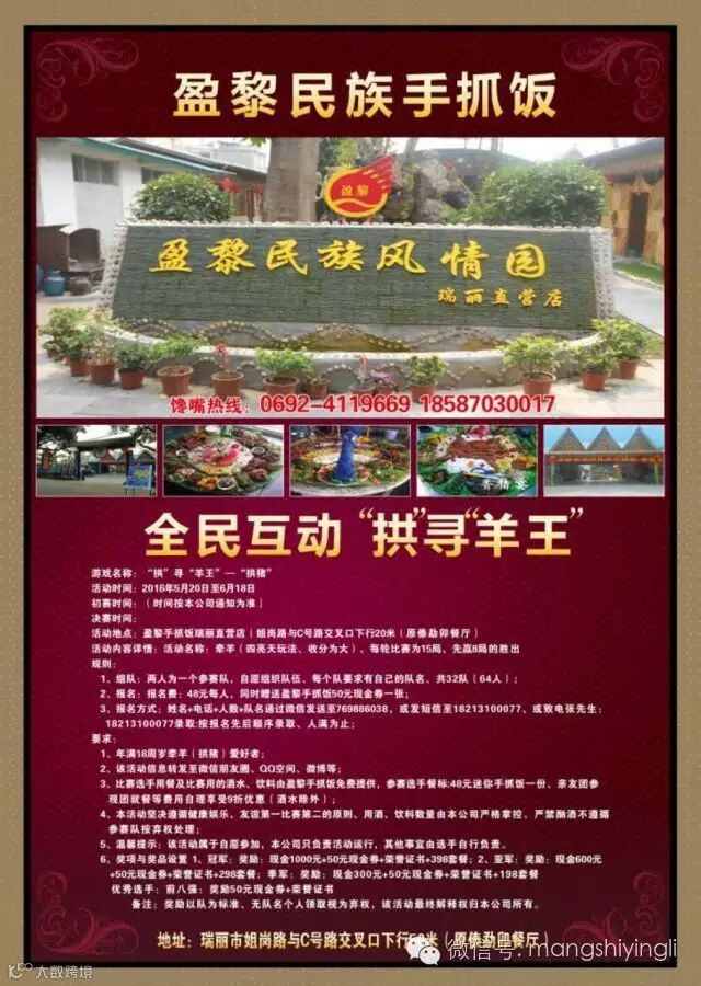 位于瑞丽市姐岗南路与C号路交叉口的原“傣勐卯”餐厅,现在已经不复存在,取而代之的是“盈黎民族风情园”--盈黎手抓饭。