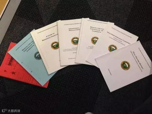 澳洲跳伞证一共有 A,B,C,D,E,F六个等级,这些基本上是跳伞次数和降落准确得证明;除这之外还有starcrest多人造型证明,NightRW crest夜跳证明,CRW crest降落伞造型证明, Free fly crest自由飞证明,Wingsuit crest翼装证明。