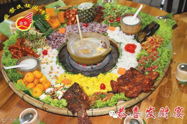 盈黎民族风情园为大伙准备的年夜饭套餐,在摆法、菜品、颜色搭配上都是让人垂涎三尺...