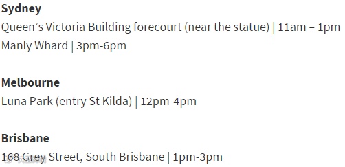 QVB forecourt, 11am-1pm