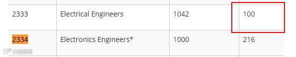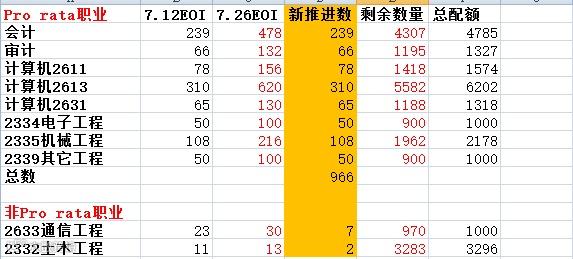 移民局官网上配额加星号表明是pro rata,pro rata专业还是那8个,具体包括:会计、审计、计算机2611、2613和2631,电子工程2334、机械工程2335和其他工程2339。